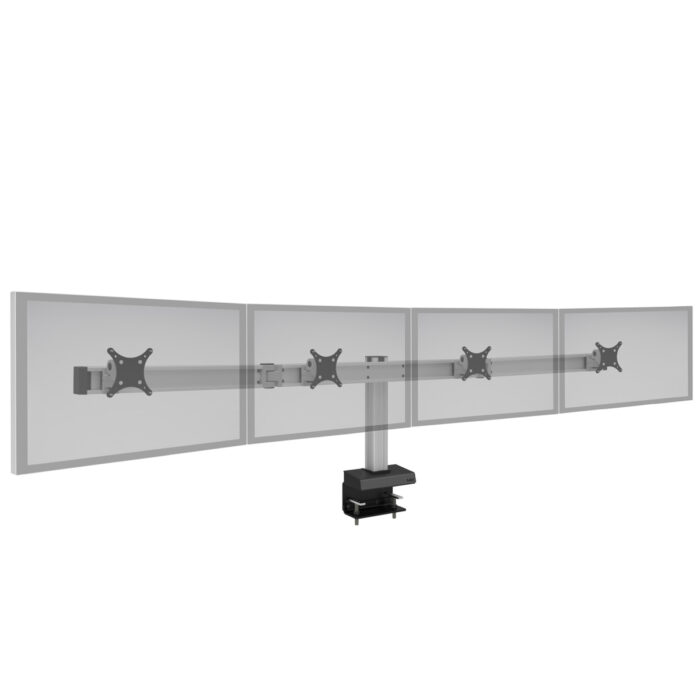 The Bild quad monitor mount suspends four monitors side-by-side flat or angled in an arch in landscape or portrait orientation. The Bild quad monitor mount, like all the Bild multi-monitor mount configurations, enables the user to build, adjust and adapt with ease for their specific application.