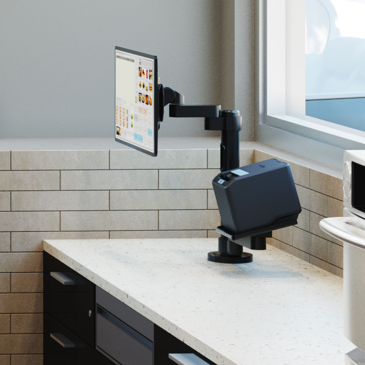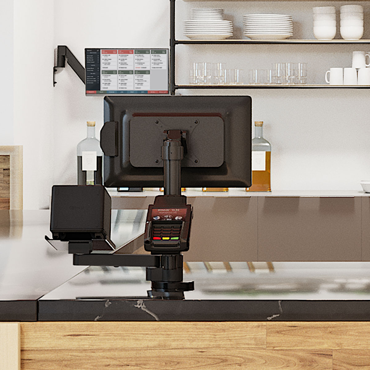 - Customizable: Support for multiple displays, terminal payment devices, printer trays and alternate mounting options are available, watch the video.