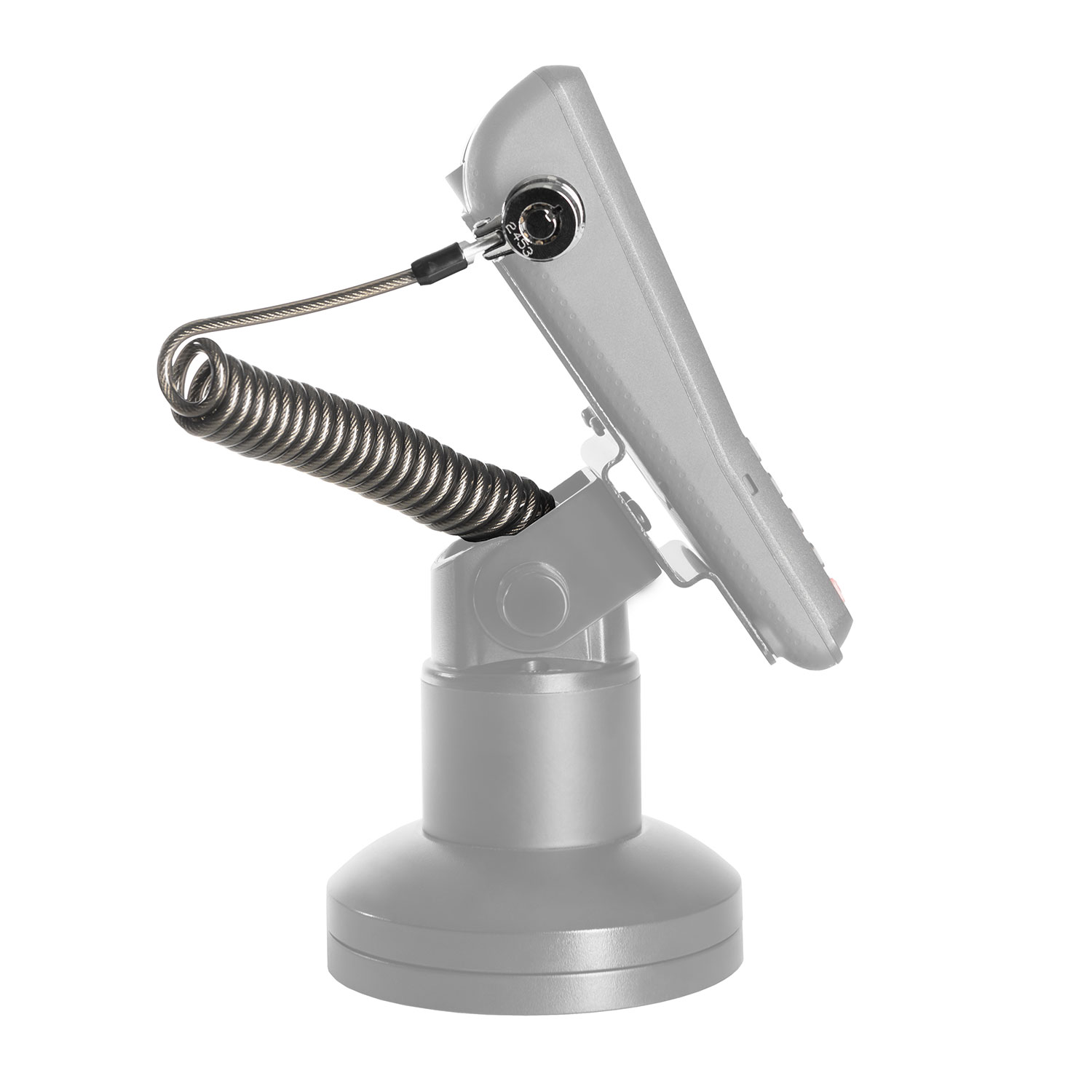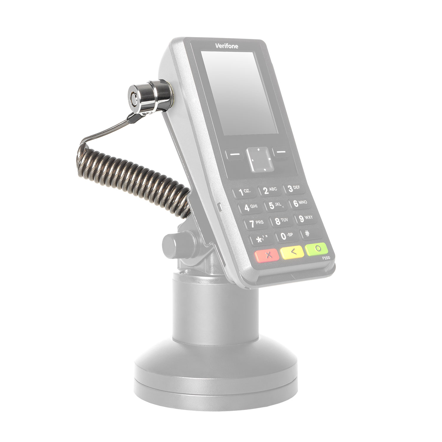 Secures payment terminal to payment terminal stand to prevent theft. Includes security tether with retainer and two keys.
